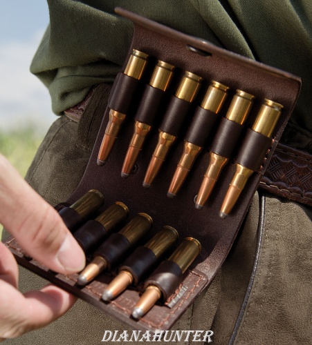 Poľovnícke opaskové kožené púzdro na náboje,